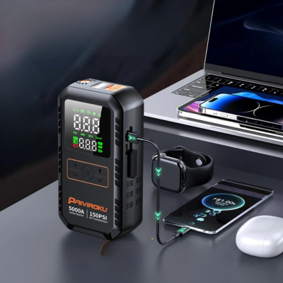 Votre voiture, votre moto, même le camping-car du voisin. Mais ce n'est pas tout. Le compresseur d'air intégré gonfle vos pneus jusqu'à 150 PSI.